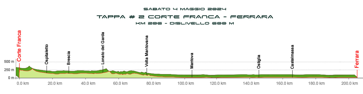 | Con lo scollinamento sull'Abetone si riattraversano gli Appenini e, dopo una lunghissima discesa, intervallata da numerose contropendenze, si raggiunge la Pianura Padana. |