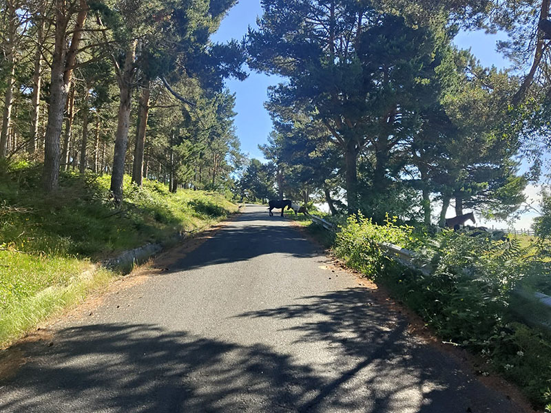 | Appena abbandonata la località di Espinosa de los Monteros, la strada si inerpica immediatamente, dapprima in mezzo a una zona boschiva, poi in mezzo ai pascoli. |