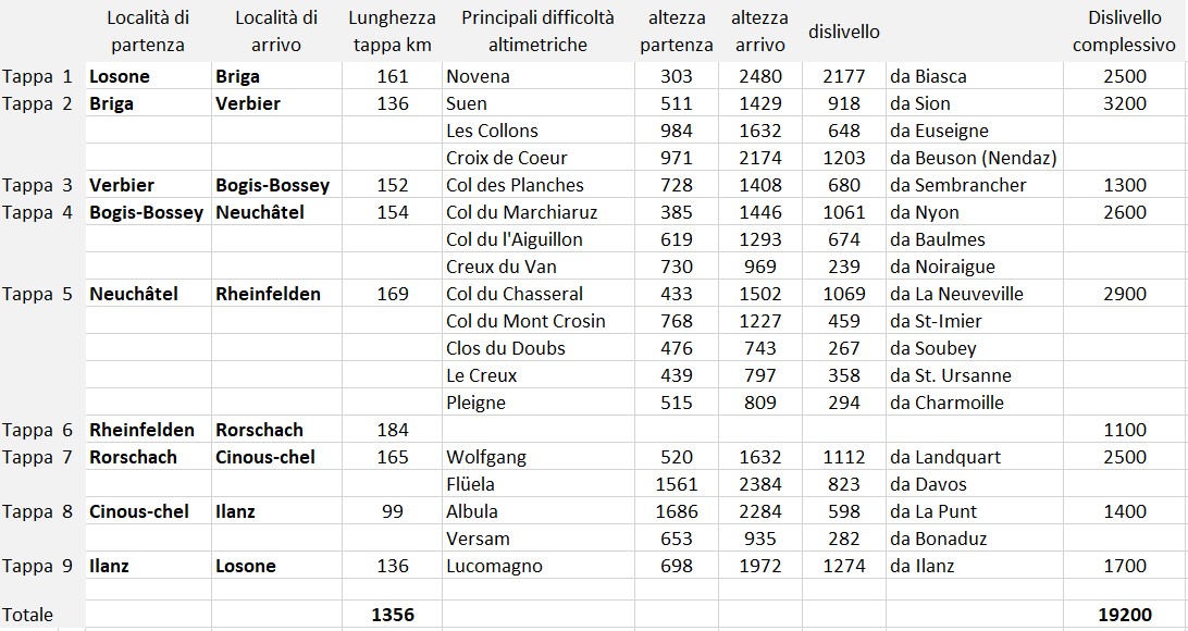| NEUCHÂTEL - RHEINFELDEN 169 KM, DISLIVELLO 2900 M |